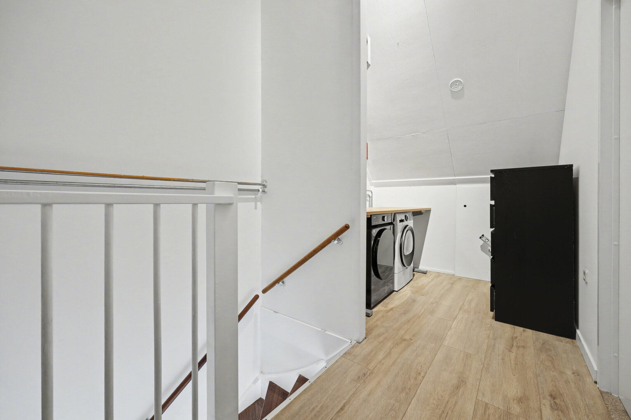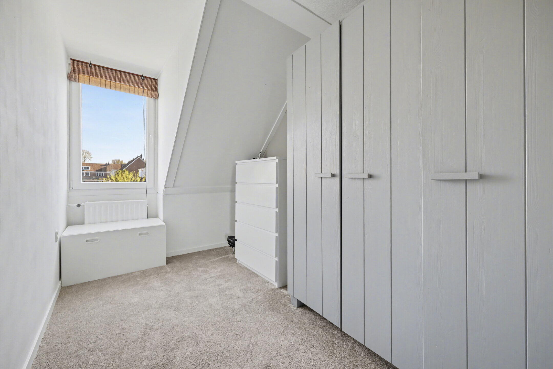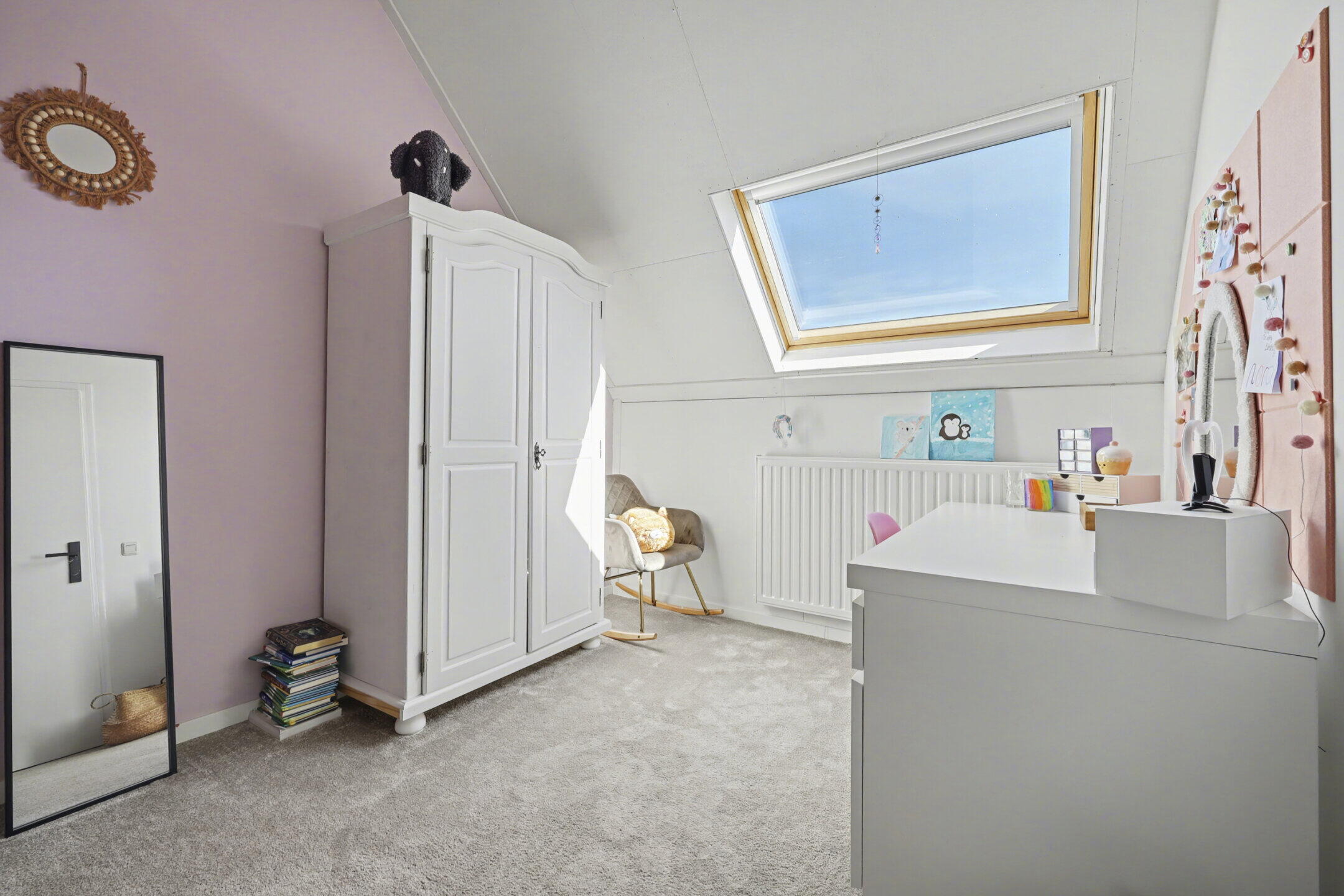 Zolderverdieping: overloop met nieuwe HR combi ketel en wasmachine en droger aansluitingen, extra bergruimte achter de knieschotten en een 4e ruime slaapkamer onder de hoge kap met Velux dakraam.