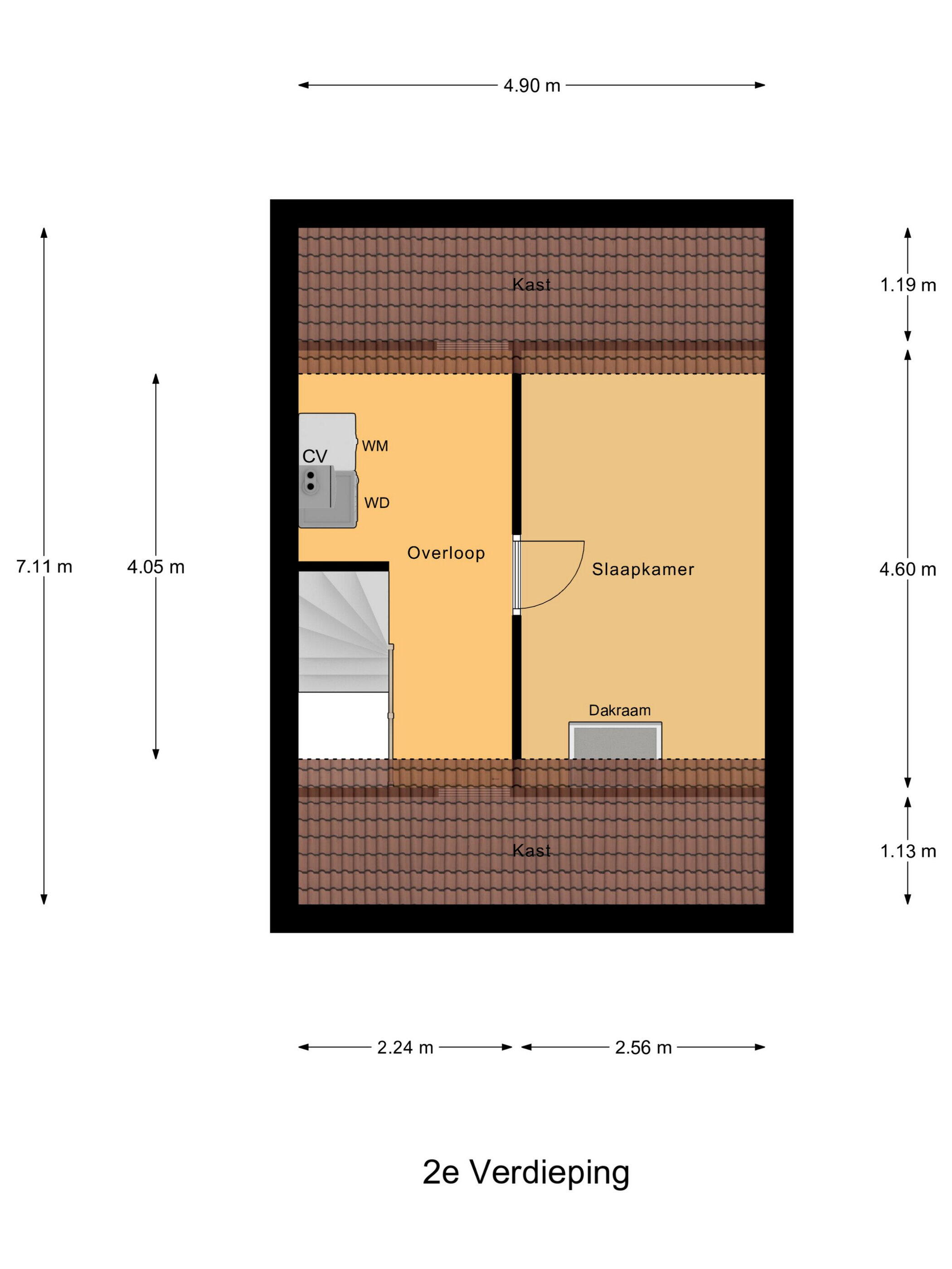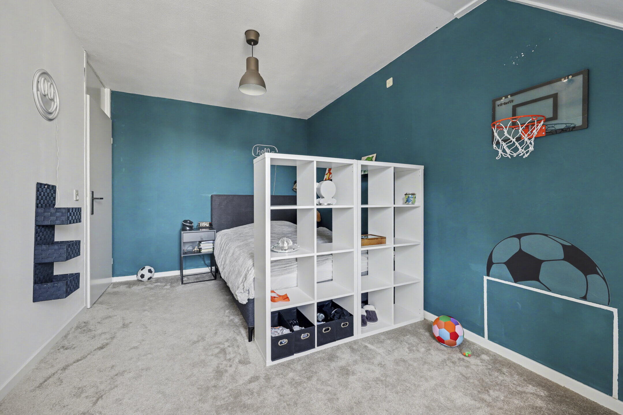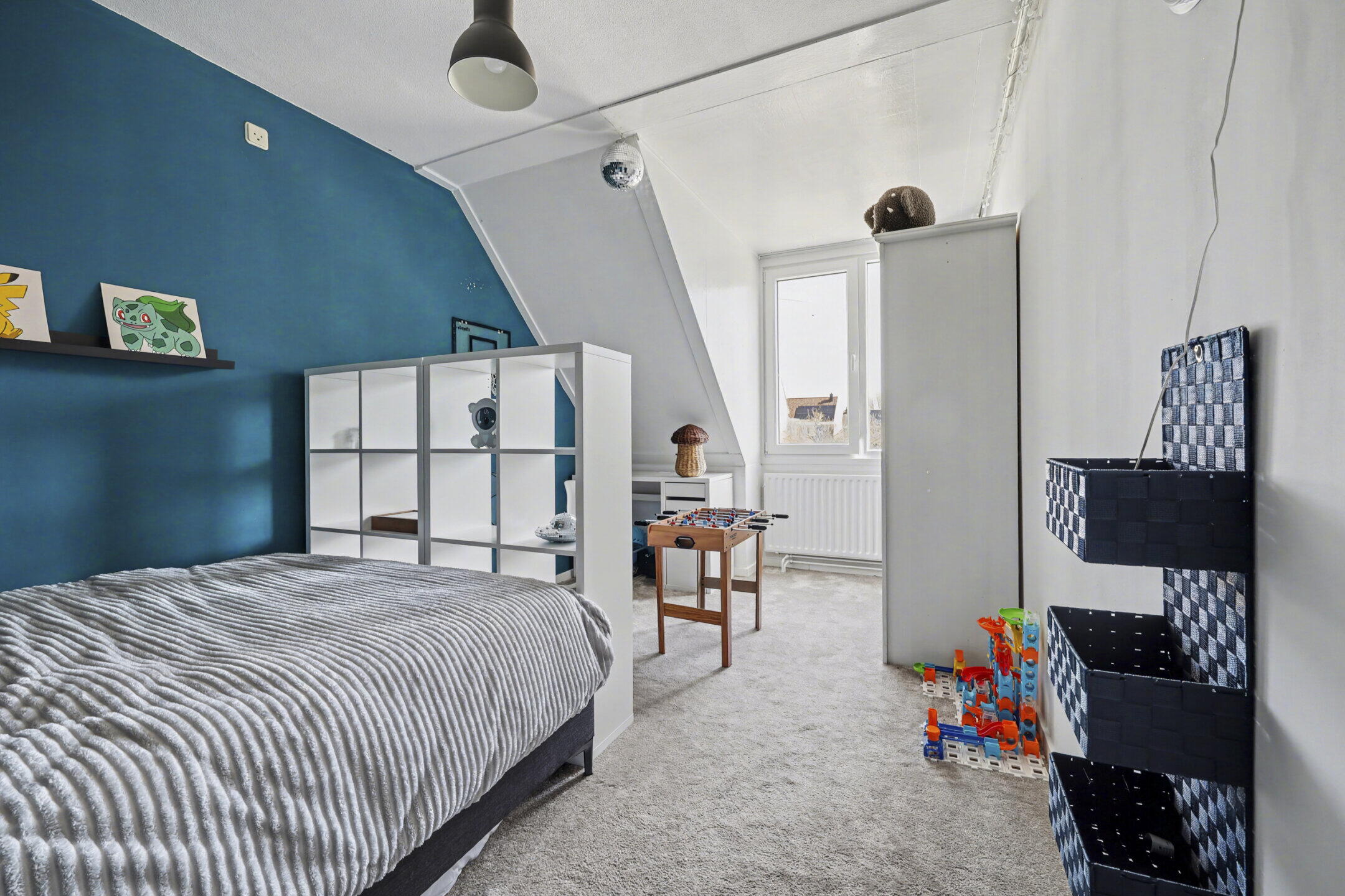 Zolderverdieping: overloop met nieuwe HR combi ketel en wasmachine en droger aansluitingen, extra bergruimte achter de knieschotten en een 4e ruime slaapkamer onder de hoge kap met Velux dakraam.