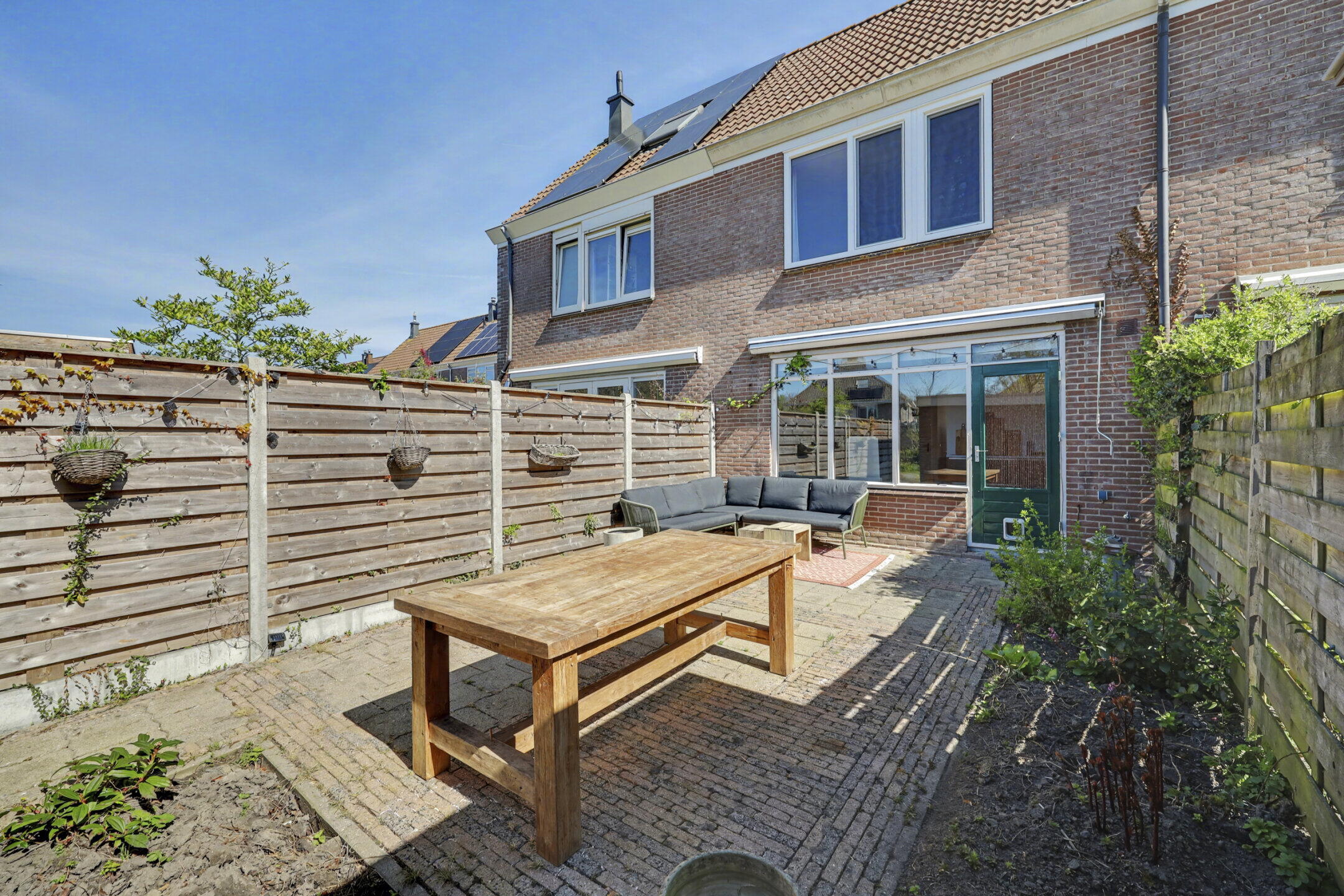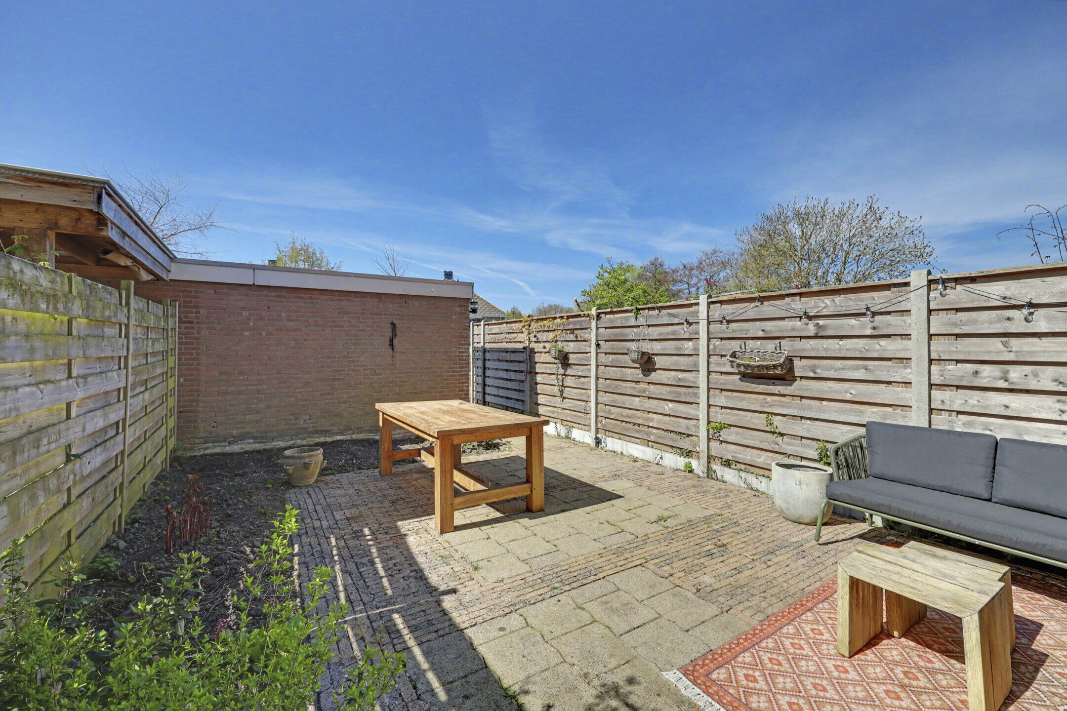 Tuin: zonnige achtertuin(zuidwest) met fietsberging en vrije achterom.